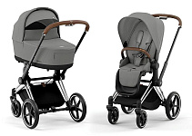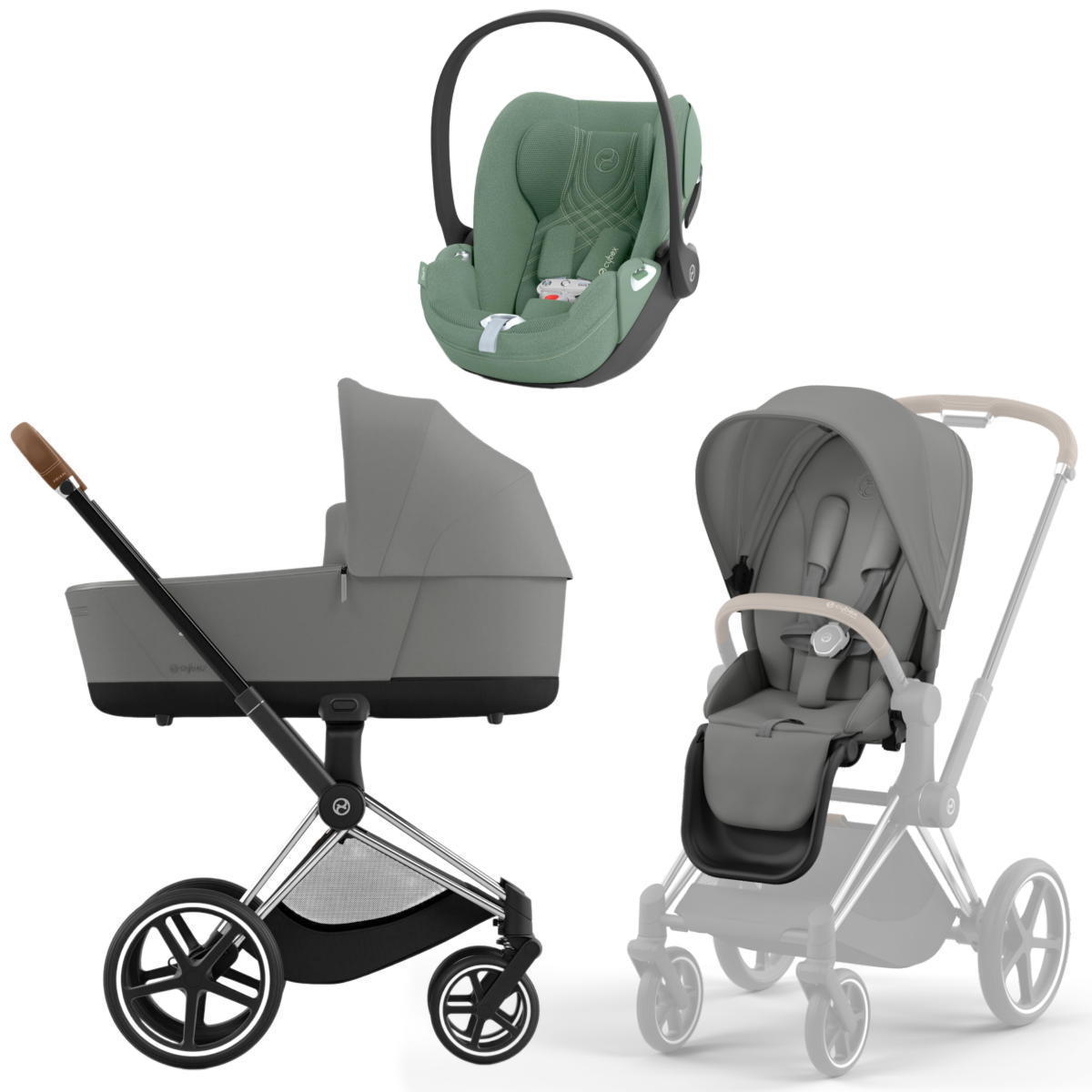 Коляска 3 в 1 Cybex Priam IV Chrome Brown complete и автокресло Cloud T i-Size Leaf Green Plus Mirage Grey