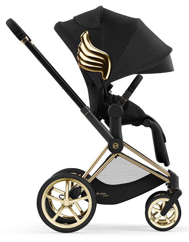 Одной из таких коллекций является Cybex Priam by Jeremy Scott. Джереми Скотт - известный дизайнер, чьи работы революционизируют современные модные тенденции. Его дизайн коляски с золотыми крыльями олицетворяет чистоту и искренность детей. Коляска выполнена в черном цвете с золотыми акцентами на раме и спицах, что придает ей неповторимый стиль.