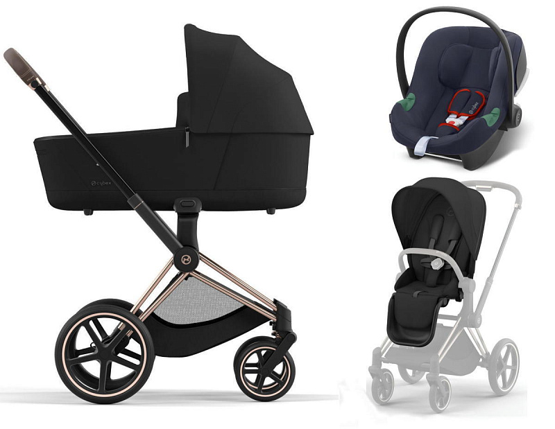 Cybex Priam IV 3 в 1 (Сайбекс Приам 4) является самым полным комплектом немецкой гибридной универсальной премиальной коляски, который удовлетворит все изысканные потребности с первых дней жизни вашего малыша до достижения им 4-летнего возраста. Данная модель коляски Priam IV имеет шасси модели в расцветке Rosegold (рама розовое золото, бампер и ручка в коричневом оттенке) и упакована в одну коробку, в комплекте к коляске идет автокресло Aton B2 i-Size Bay Blue.