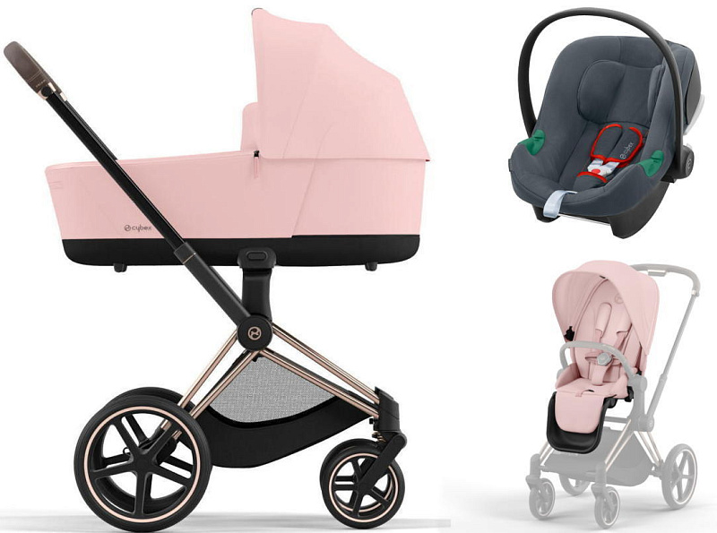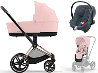 Коляска 3 в 1 Cybex Priam IV Rosegold complete и автокресло Aton B2 i-Size Steel Grey Peach Pink