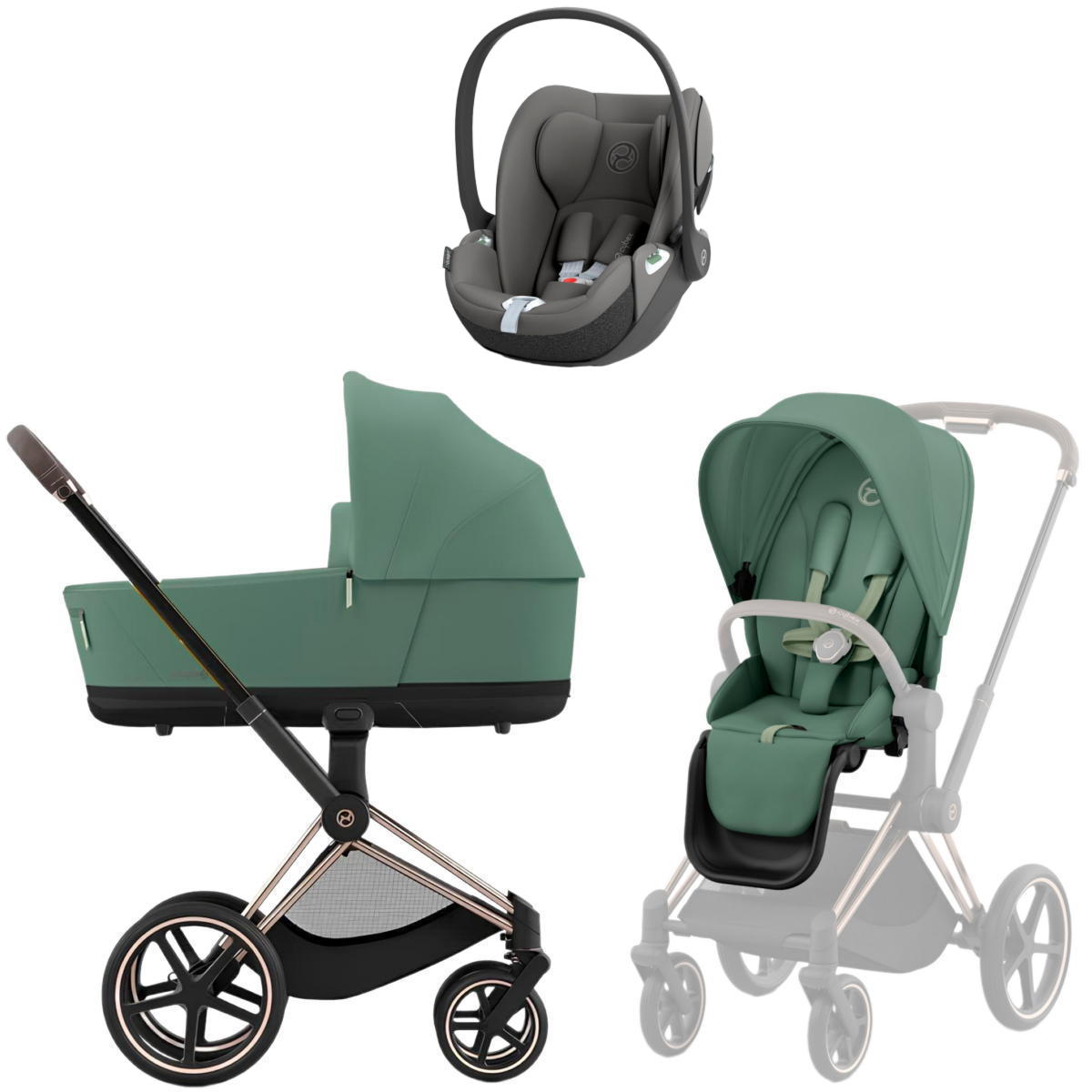 Коляска 3 в 1 Cybex Priam IV Rosegold complete и автокресло Cloud T i-Size Mirage Grey Leaf Green