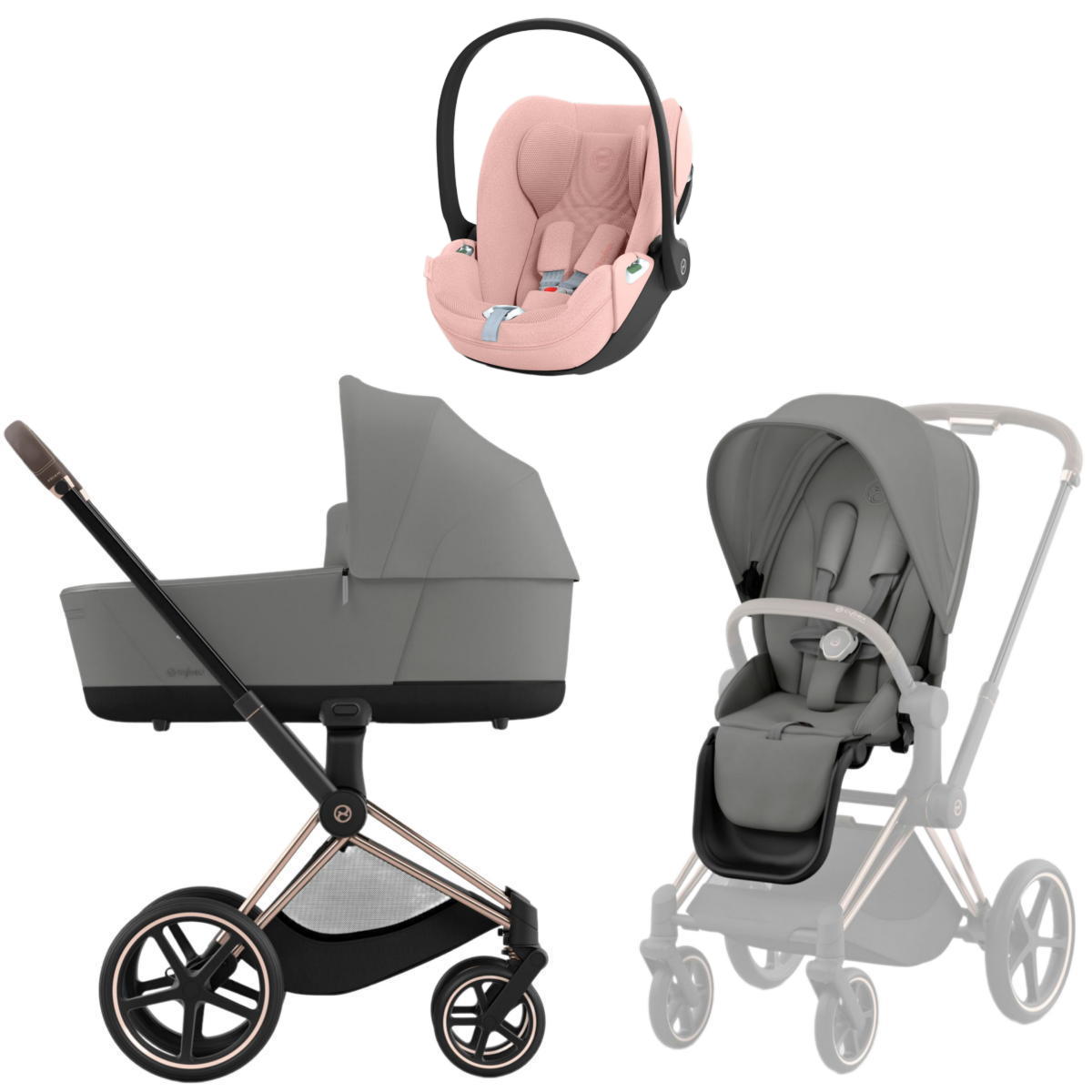 Коляска 3 в 1 Cybex Priam IV Rosegold complete и автокресло Cloud T i-Size Peach Pink Plus Mirage Grey
