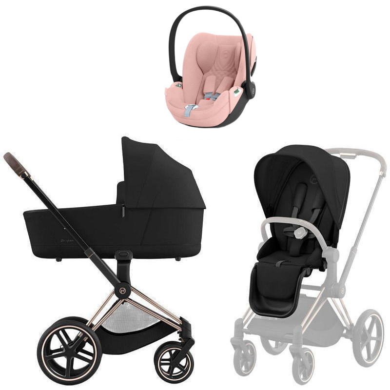 Коляска 3 в 1 Cybex Priam IV Rosegold complete и автокресло Cloud T i-Size Peach Pink Plus Sepia Black