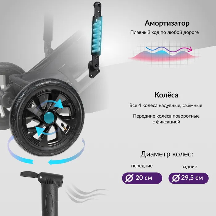 Надувные колеса: все 4 колеса обеспечивают мягкую амортизацию и плавный ход по неровным поверхностям.