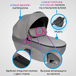 Регулируемый подголовник и защитный козырек добавляют удобства, а высокий отворот на пологе защищает малыша от ветра и осадков. Подголовник регулируется от 140 до 180 градусов. На капюшоне расположена скрытая секция из москитной сетки.