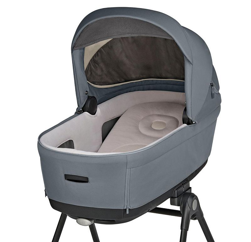 Регулируемый наклон спинки люльки гарантирует удобное положение малышу после кормления и позволяет наблюдать за окружающим миром во время бодрствования. Дно люльки оснащено системой вентиляции для регулирования воздухообмена и температуры внутри люльки. Вентиляционное окошко в капюшоне обеспечивает циркуляцию воздуха, благодаря чему внутри люльки сохраняется прохлада в жаркие дни.