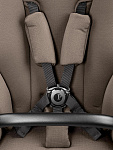 Просторное сиденье оснащено пятиточечными ремнями безопасности с мягкими накладками и системой защелкивания, расстегнуть которую могут только родители.