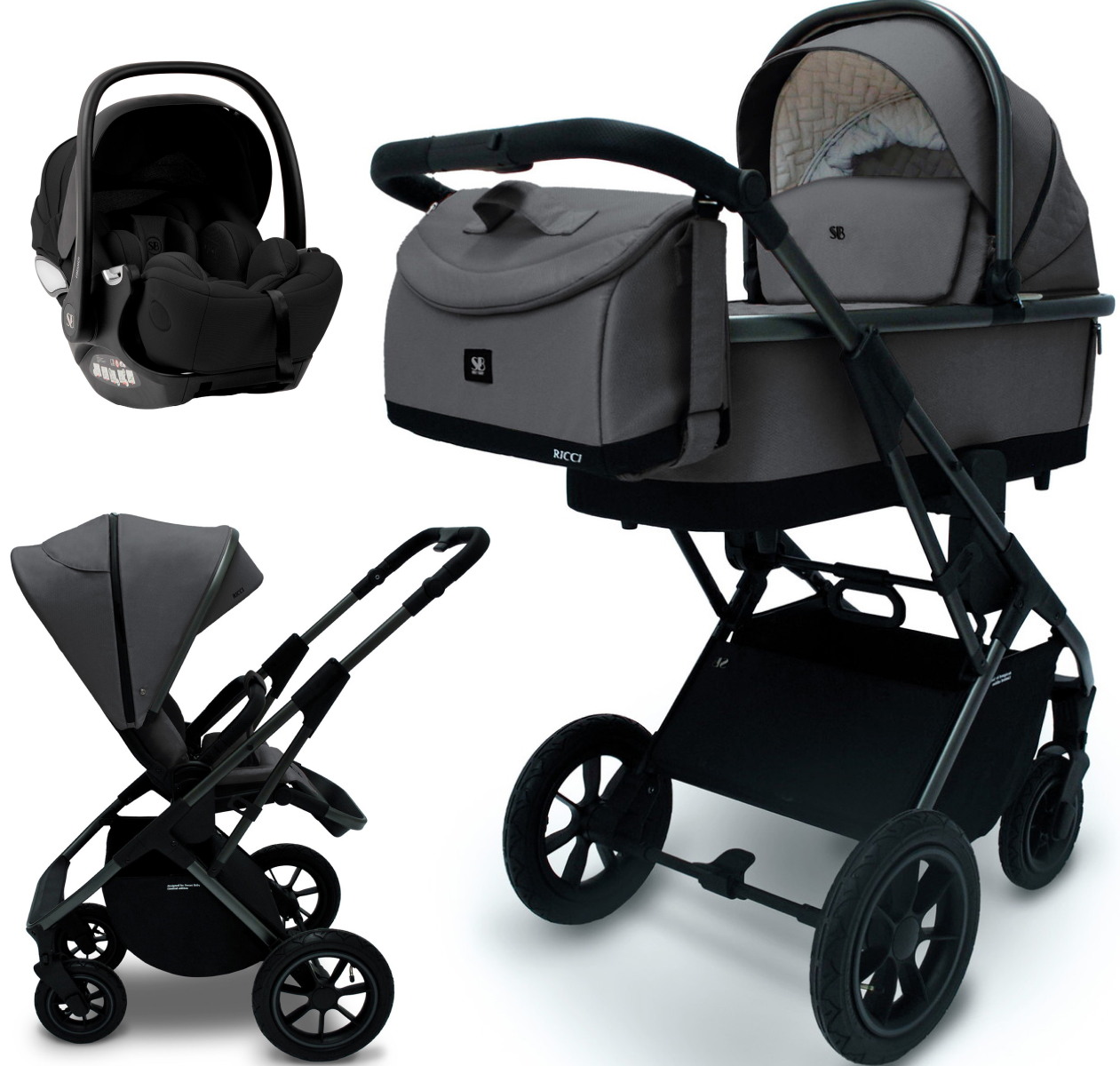 Коляска 3 в 1 Sweet Baby Ricci Air + автокресло Premier Black Steel Grey (Air)