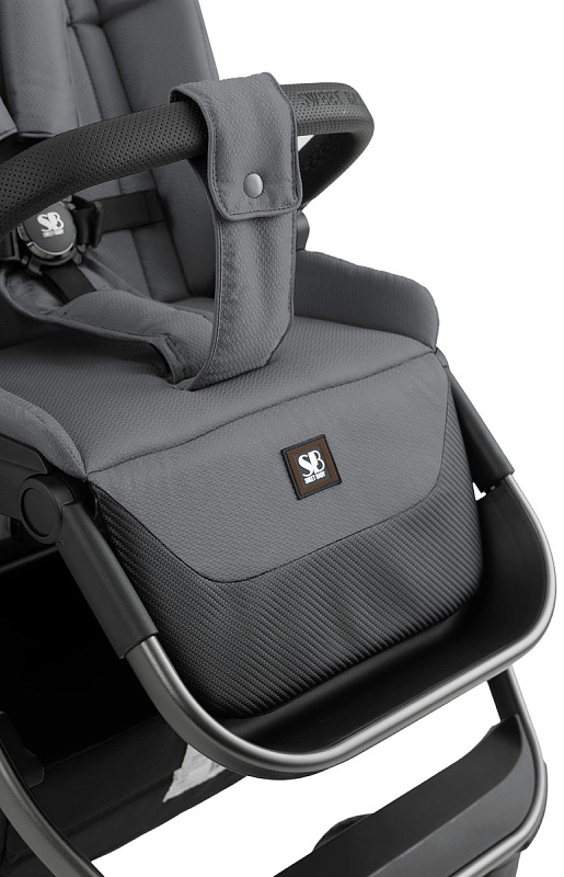 Прогулочный блок коляски имеет 3 регулируемых положения спинки и большой капюшон с дополнительной секцией и козырьком. Он защищает кроху от солнца и ветра, полностью закрывая малыша до ножек в разложенном состоянии. Магнитные пятиточечные ремни безопасности гарантируют надежную фиксацию маленького пассажира и удобно регулируются по росту. Бампер из экокожи, с паховой перемычкой, легко отстегивается с обеих сторон для удобства.