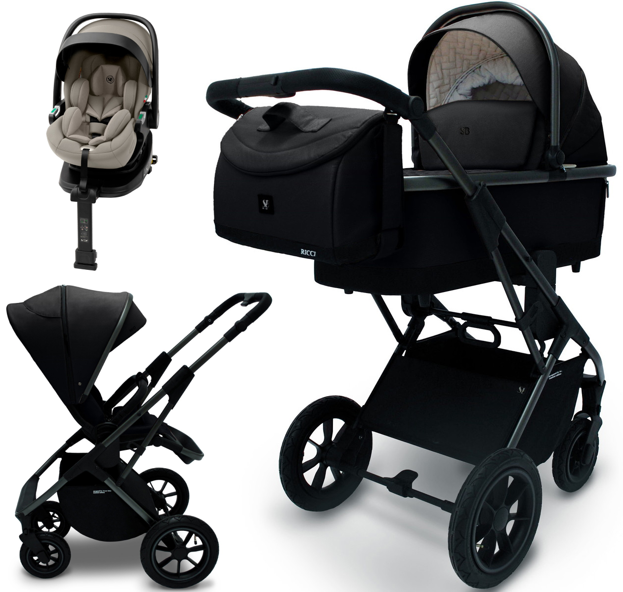 Коляска 3 в 1 Sweet Baby Ricci Air + автокресло Premier Plus Begie Black (Air)