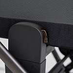 Прогулочный блок коляски имеет 3 регулируемых положения спинки и большой капюшон с дополнительной секцией и козырьком. Он защищает кроху от солнца и ветра, полностью закрывая малыша до ножек в разложенном состоянии. Магнитные пятиточечные ремни безопасности гарантируют надежную фиксацию маленького пассажира и удобно регулируются по росту. Бампер из экокожи, с паховой перемычкой, легко отстегивается с обеих сторон для удобства.