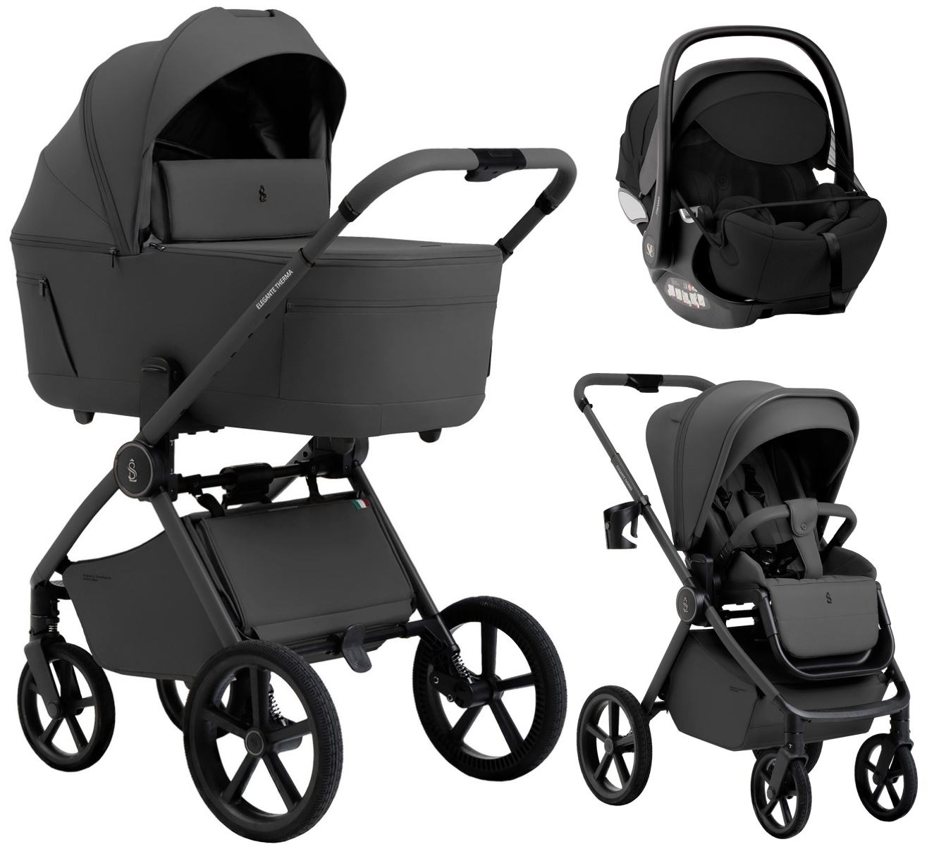 Коляска 3 в 1 Sweet Baby SBL Elegante Therma Colore + автокресло Premier Black Dark Grey