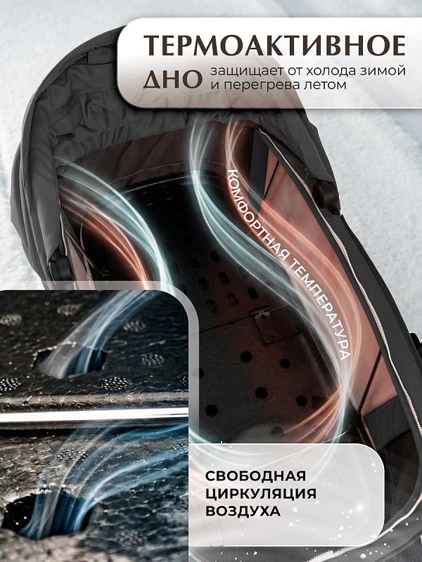 - Термоактивное дно люльки поддерживает оптимальную температуру и защищает от переохлаждения зимой и перегрева летом.