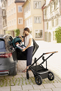 - При установке автолюльки на Britax Roemer в автомобиле или на прогулочной коляске отчетливо слышимый щелчок сообщает о том, что автокресло надёжно установлено.