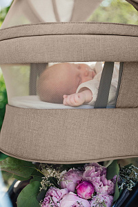 - Очень большой регулируемый солнцезащитный козырек UPF50+ защитит ребёнка от солнца и ветра, а также обеспечит тихое и уютное место для безопасного и крепкого сна в дороге.