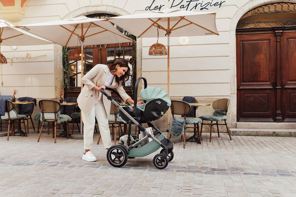 - При установке автолюльки на Britax Roemer в автомобиле или на прогулочной коляске отчетливо слышимый щелчок сообщает о том, что автокресло надёжно установлено.