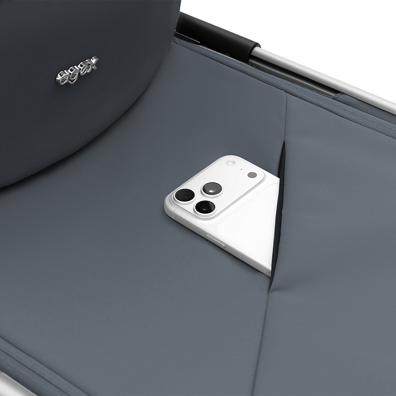 Удобная ручка Agex Life обтянута мягкой и приятной на ощупь экокожей, а по центру расположена кнопка для регулировки высоты. Нажав на неё, вы сможете настроить высоту ручки под свой рост. По бокам ручки находятся крючки для сумки, которая идёт в комплекте с коляской.
