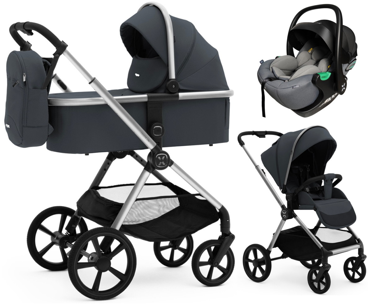 Коляска Agex Life 3 в 1 хромированная рама с автокреслом i-Safe Grey ALM606 Midnight Grey (Темно-серый)