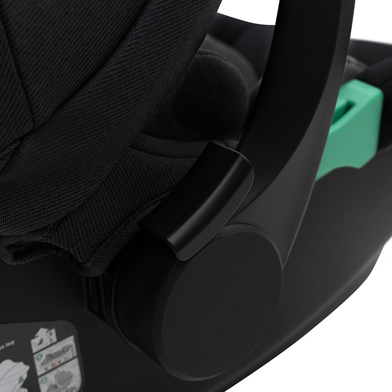 Безопасность маленького пассажира обеспечивают поворотный откидной бампер и пятиточечные ремни с мягкими накладками. Ремни регулируются по высоте в соответствии с ростом ребёнка, а бампер выполнен из качественной экокожи. Верхние ремни можно отстегнуть, но полностью убирать их нельзя — они пришиты к спинке сиденья.
