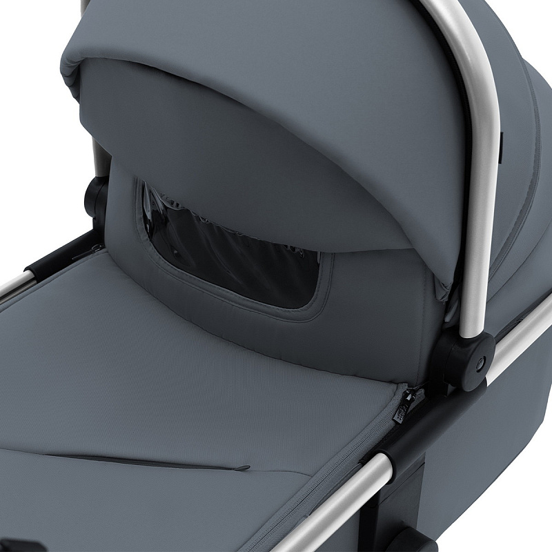 На улице люлька обеспечит комфорт и безопасность малыша при любых погодных условиях. Большой капюшон с дополнительной молнией легко регулируется одной рукой. Если его полностью раскрыть, он надёжно защитит малыша. Вместе с тёплой накидкой на ножки люлька превращается в надёжный кокон, в котором ребёнку будет уютно даже в самый сильный мороз. В жаркие дни можно открыть вентиляционное отверстие на большом капюшоне.