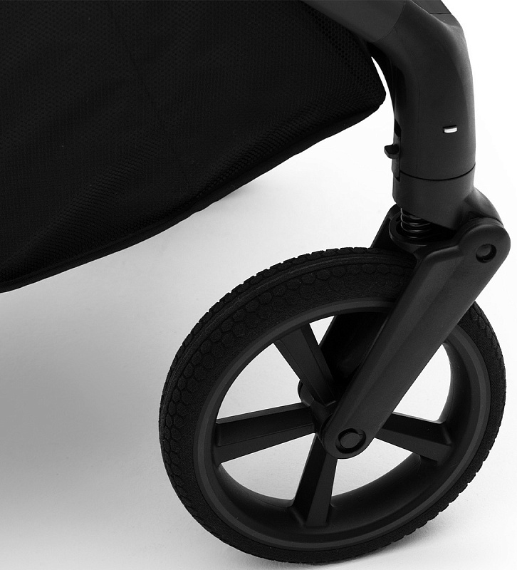 Прочные и большие колёса обеспечивают отличное сцепление с поверхностью, позволяя легко преодолевать различные дорожные препятствия. Мягкие резиновые покрышки гарантируют комфорт для малыша даже на неровной дороге благодаря пружинной амортизации на каждом колесе.