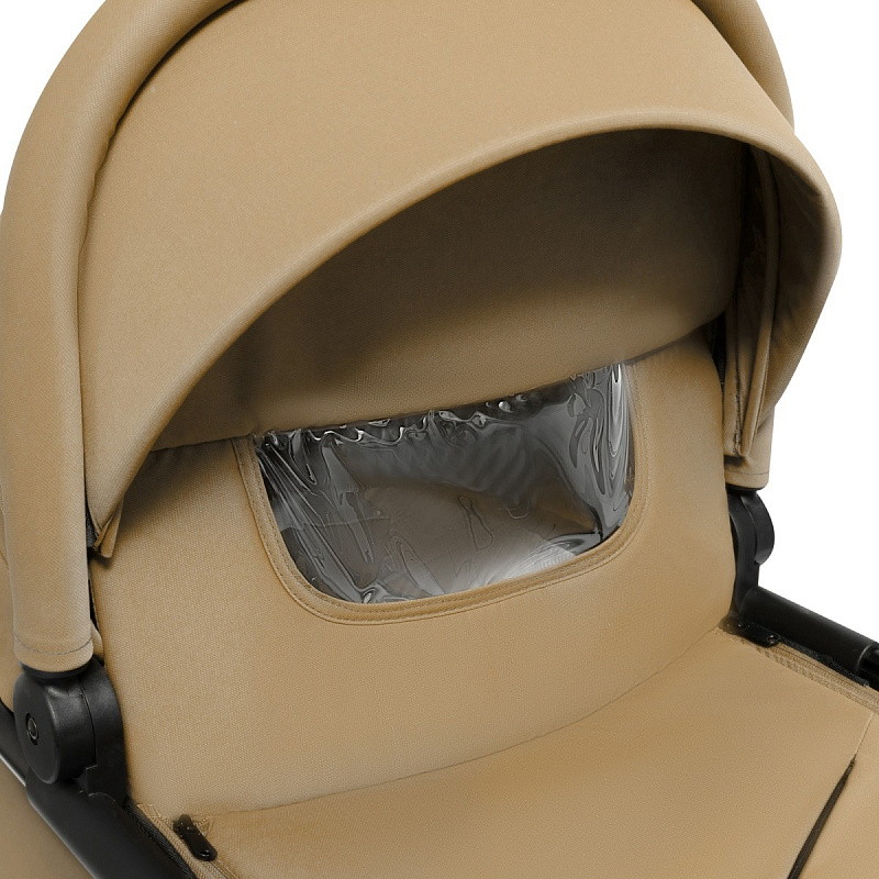 Особенность прогулочного блока коляски Agex Life — большой капюшон, который закрывает малыша до ног в сидячем положении. Ребёнок защищён от дождя и ветра. Чтобы полностью закрыть ребёнка, нужно максимально раскрыть капюшон. Для удобства наблюдения за малышом предусмотрено смотровое окно со шторкой на магнитах.