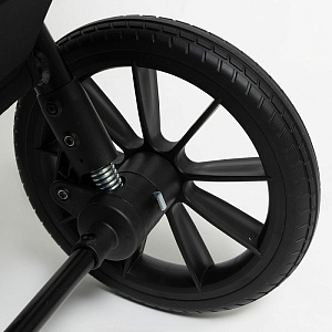 Прочные и большие колёса обеспечивают отличное сцепление с поверхностью, позволяя легко преодолевать различные дорожные препятствия. Мягкие резиновые покрышки гарантируют комфорт для малыша даже на неровной дороге благодаря пружинной амортизации на каждом колесе.
