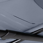 Безопасность маленького пассажира обеспечивают поворотный откидной бампер и пятиточечные ремни с мягкими накладками. Ремни регулируются по высоте в соответствии с ростом ребёнка, а бампер выполнен из качественной экокожи. Верхние ремни можно отстегнуть, но полностью убирать их нельзя — они пришиты к спинке сиденья.