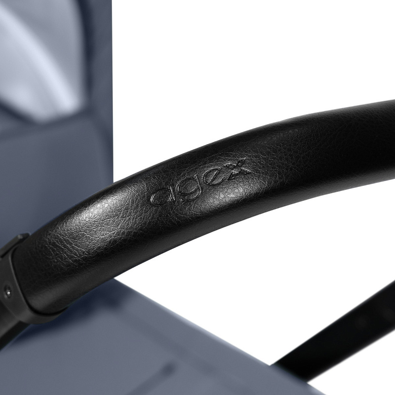 Удобная ручка Agex Play обтянута мягкой и приятной на ощупь экокожей, а по центру расположена кнопка для регулировки высоты. Нажав на неё, вы сможете настроить высоту ручки под свой рост. По бокам ручки находятся крючки для сумки, которая идёт в комплекте с коляской.