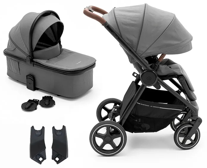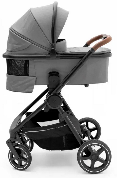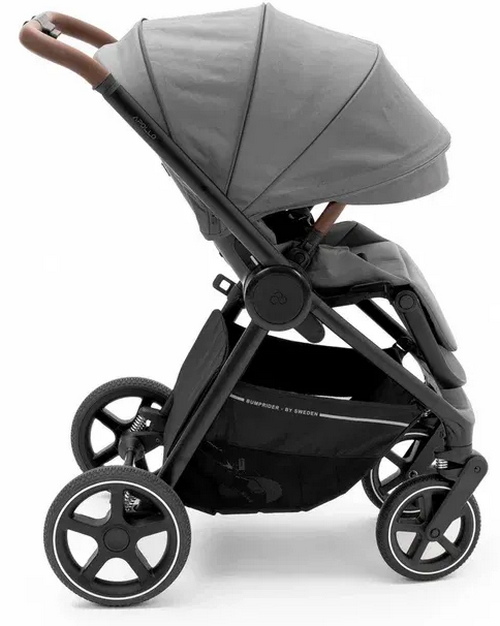 Bumprider Apollo имеет большие непрокалываемые колеса, телескопическую ручку и багажную корзину, в которой найдется место и для покупок, и для необходимых на прогулке вещей. При помощи адаптеров (входят в комплект) на шасси можно устанавливать автокресло группы 0+.