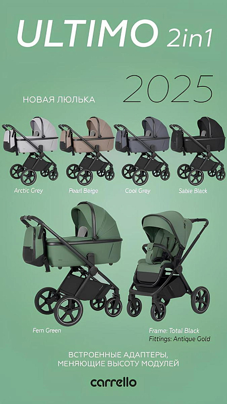 Одной из уникальных особенностей этой модели является возможность регулировки высоты при помощи адаптеров как люльки, так и прогулочного блока. Это значит, что высоту люльки можно подстроить под рост родителей, что значительно облегчает процесс укладывания малыша. Прогулочный блок также можно поднять, чтобы защитить ребенка от пыли и грязи, когда он еще маленький. В дальнейшем, когда ребенок подрастет, высоту можно снизить, чтобы он мог самостоятельно залезать и вылезать из коляски. Это делает Carrello Ultimo универсальным решением, которое будет расти вместе с вашим ребенком.
