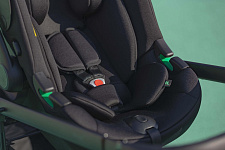Шасси коляски имеет компактную конструкцию и складывается таким образом, что сохраняет вертикальное положение. Это особенно удобно для хранения в небольших квартирах или для транспортировки в багажнике автомобиля. Пятиточечная система ремней безопасности с удобной магнитной пряжкой обеспечивает надежную фиксацию малыша, позволяя родителям легко и быстро застегивать замок. Для дополнительного комфорта предусмотрены съемный, поворотный бампер и ограничитель от сползания, что делает использование коляски еще более безопасным.