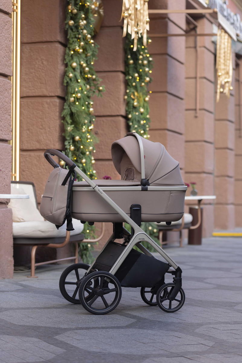Кап люльки оборудован ручкой для переноски, имеется съемный козырек, дополнительная секция, увеличивающая размер капа, климатическое окно под молнией в корпусе люльки и в капюшоне.