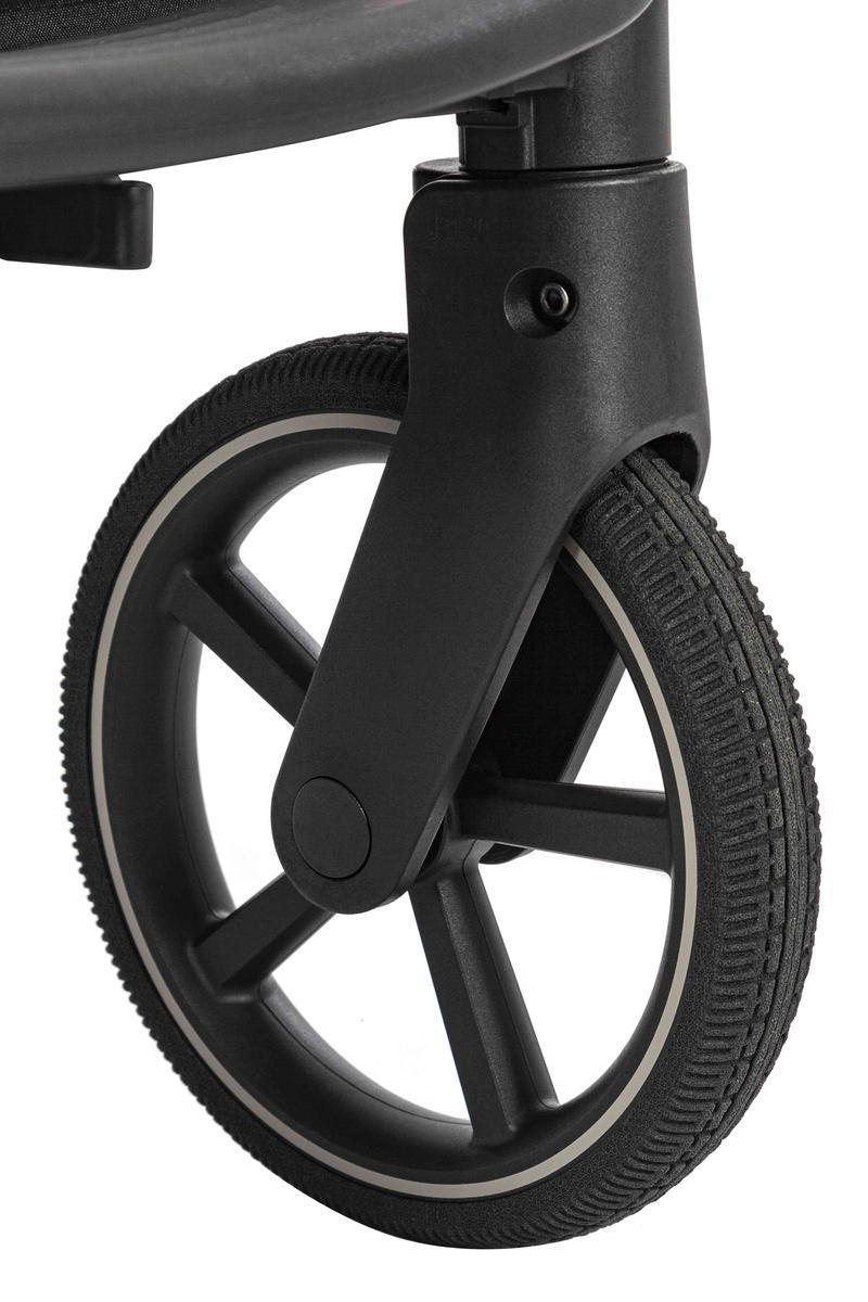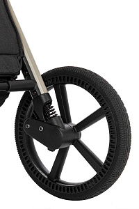 Передние колёса с автоматической стабилизацией, поворотные на 360°, фиксируются в положении «прямо» при помощи удобного переключателеля под подножкой.