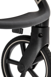 Прочная и лёгкая алюминиевая рама с телескопической регулировкой высоты родительской ручки в четырёх положениях и спаренным тормозом.