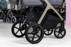 Устанавливается на раму как по ходу, так и против хода движения коляски, компактно складывается вместе с рамой коляски при любом направлении его установки на раме.