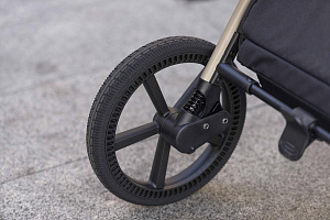 Передние колёса с автоматической стабилизацией, поворотные на 360°, фиксируются в положении «прямо» при помощи удобного переключателеля под подножкой.