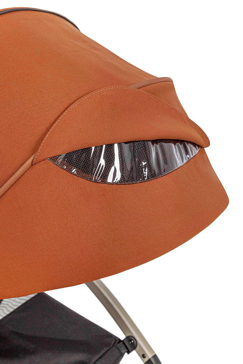 Прочное термо-основание, большой капюшон, укрытие для ножек с окошком для присмотра обеспечивают комфорт и защиту в холодное время года.