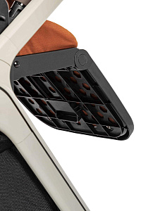 Текстиль прогулочного блока обладает водоотталкивающим эффектом и защитой от ультрафиолетовых лучей spf 50.