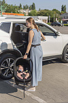 Устанавливается на раму как по ходу, так и против хода движения коляски, компактно складывается вместе с рамой коляски при любом направлении его установки на раме.