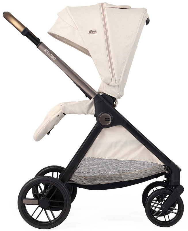 Коляска Bellagio — это произведение дизайна: от роскошных анодированных трубок до металлического значка Chicco и тканей с покрытием — каждая деталь была тщательно продумана, чтобы сделать коляску уникальной.