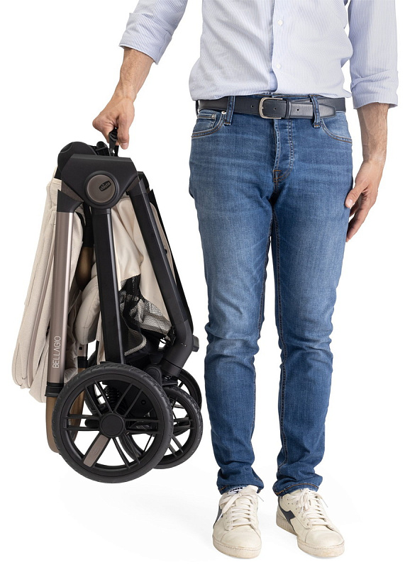 Благодаря технологии OneTouch коляска Bellagio закрывается одним жестом: всего лишь щелчок по спинке сиденья, и коляска удивительным образом закроется сама! В закрытом состоянии он стоит отдельно и оснащен практичной ручкой для переноски.