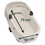 Хороший сон необходим для детей, и именно поэтому люлька Gran Comfort разработана с приоритетом на их комфорт и благополучие, предлагая просторное и уютное пространство. Благодаря исключительной вместимости (внутренние размеры: 79 x 36 см), родителям удобно доставать и класть малыша.