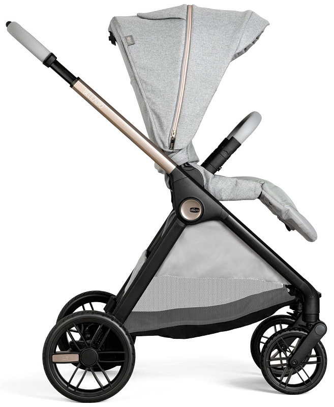 Вся коляска украшена высококачественными деталями: металлическим логотипом Chicco, светоотражающими молниями и вставками из премиальных тканей.