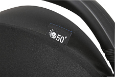 Капюшон люльки увеличивается в размере и имеет защиту от ультрафиолетовых лучей UV50+ и водоотталкивающее покрытие. Встроенный солнцезащитный козырек обеспечивает защиту ребенка от солнечных лучей и укусов комаров.