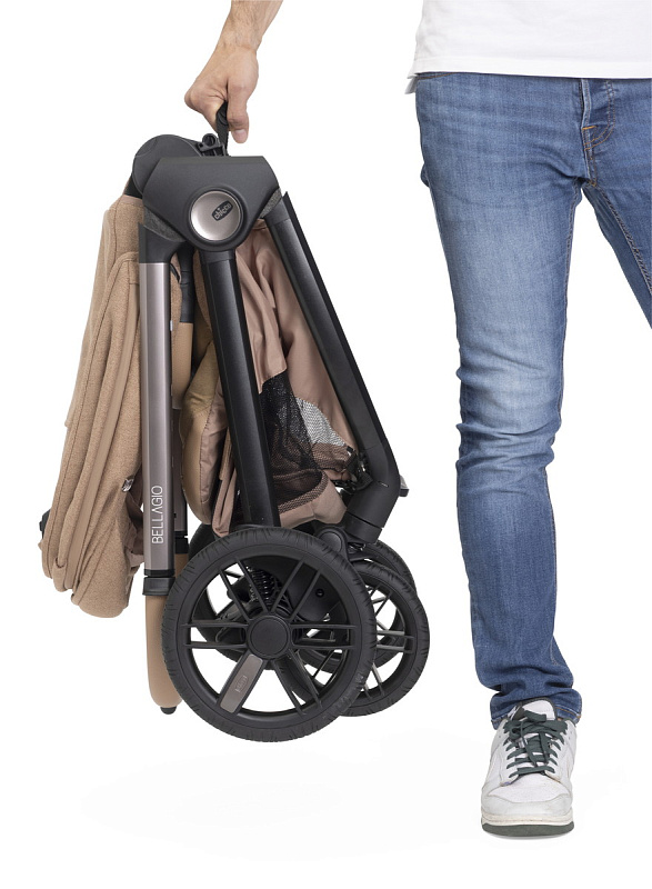 Благодаря технологии OneTouch коляска Bellagio закрывается одним жестом: всего лишь щелчок по спинке сиденья, и коляска удивительным образом закроется сама! В закрытом состоянии он стоит отдельно и оснащен практичной ручкой для переноски.