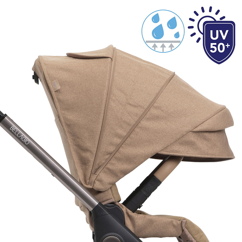 Коляска Bellagio — это произведение дизайна: от роскошных анодированных трубок до металлического значка Chicco и тканей с покрытием — каждая деталь была тщательно продумана, чтобы сделать коляску уникальной.