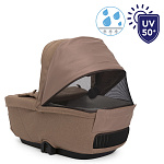 Капюшон люльки увеличивается в размере и имеет защиту от ультрафиолетовых лучей UV50+ и водоотталкивающее покрытие. Встроенный солнцезащитный козырек обеспечивает защиту ребенка от солнечных лучей и укусов комаров.