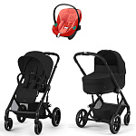 Коляска Cybex Balios S Lux BLK complete Aton S2 Hibiscus Red Base One 4 в 1 Moon Black с дождевиками