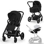 Коляска Cybex Balios S Lux BLK complete Aton S2 Lava Grey 3 в 1 Moon Black с дождевиками